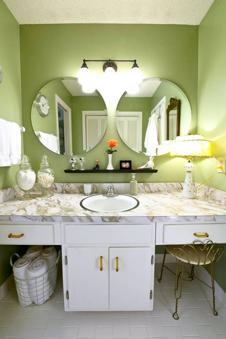 Lime green bathroom wall tiles can be of many designs, shapes, and sizes. Collins interiors fun boy's bathroom features a lime green scalloped mirror hung from an oak plank wall over a round sink matched with a polished nickel faucet fixed to a white quartz countertop. Take a look these 17 crane summerhouse ideas. Notice the shower and tub in the mirror. Green paint comes in a wide variety of shades, but this earthy, moody hue is giving us major inspiration.